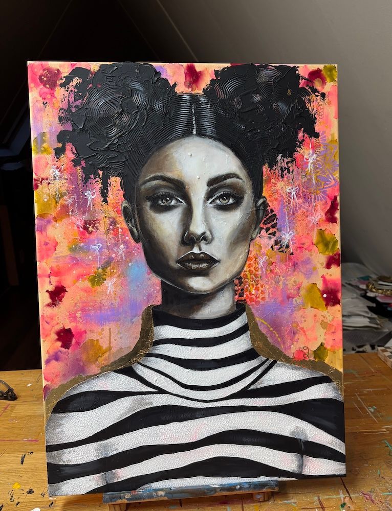 "She" mixed media doek