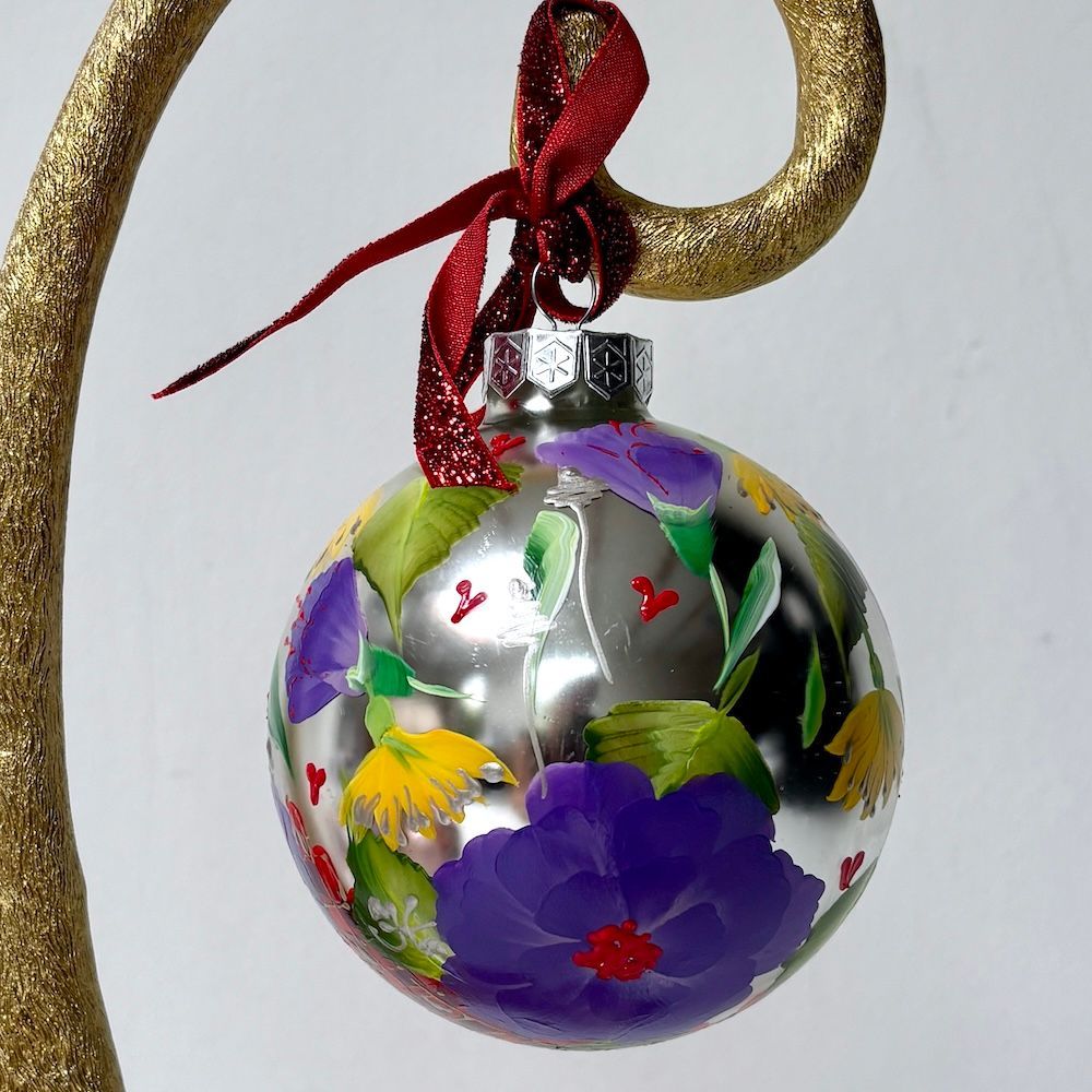 Deze handgeschilderde glazen kerstbal heeft een diameter van 10 cm en is volledig met de hand beschilderd. Elke kerstbal is een uniek kunstwerk.