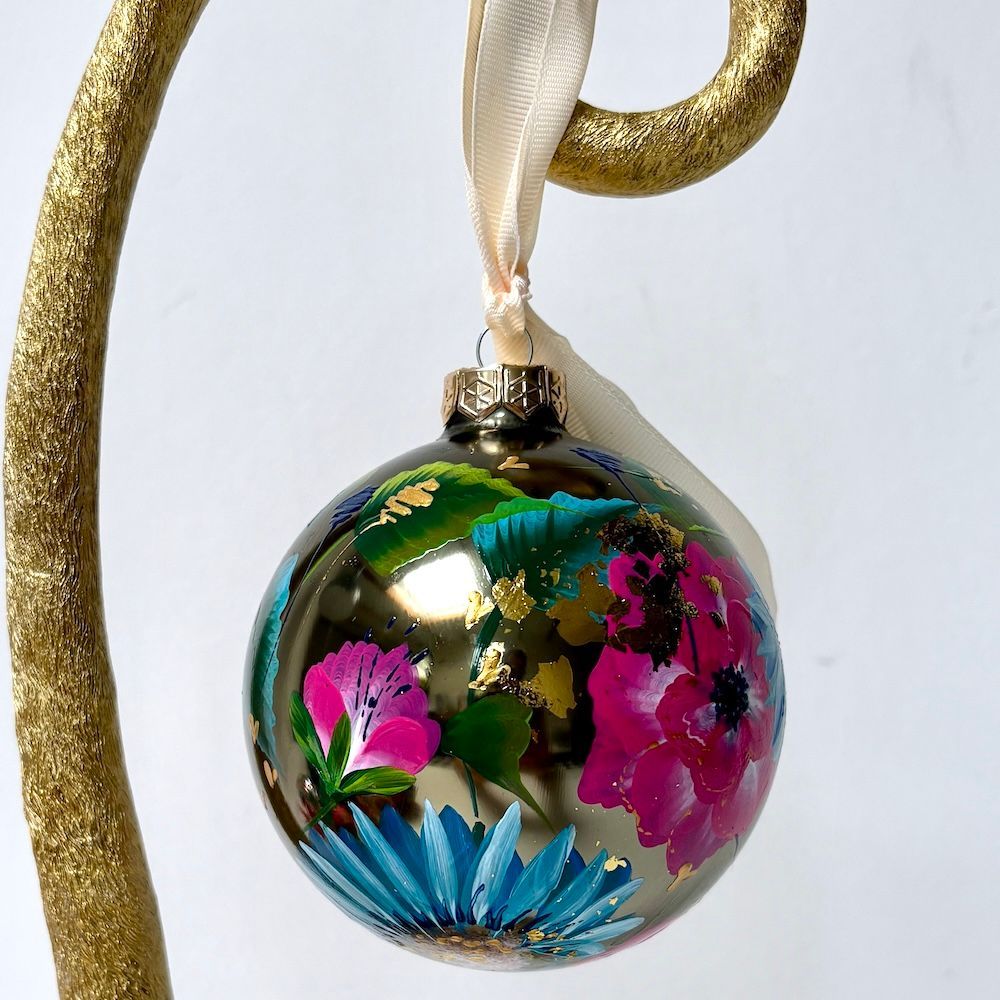 Deze handgeschilderde glazen kerstbal heeft een diameter van 10 cm en is volledig met de hand beschilderd. Elke kerstbal is een uniek kunstwerk.