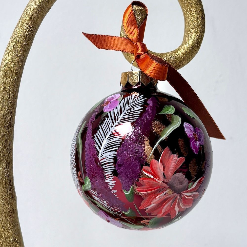 Deze handgeschilderde glazen kerstbal heeft een diameter van 10 cm en is volledig met de hand beschilderd. Elke kerstbal is een uniek kunstwerk.