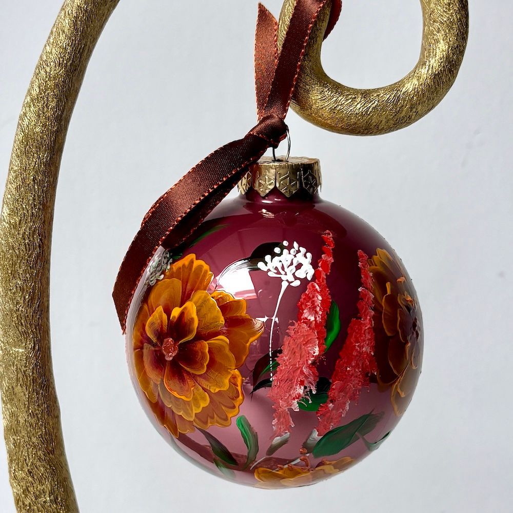 Deze handgeschilderde glazen kerstbal heeft een diameter van 10 cm en is volledig met de hand beschilderd. Elke kerstbal is een uniek kunstwerk.