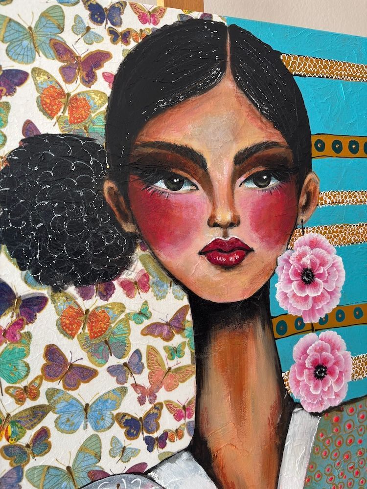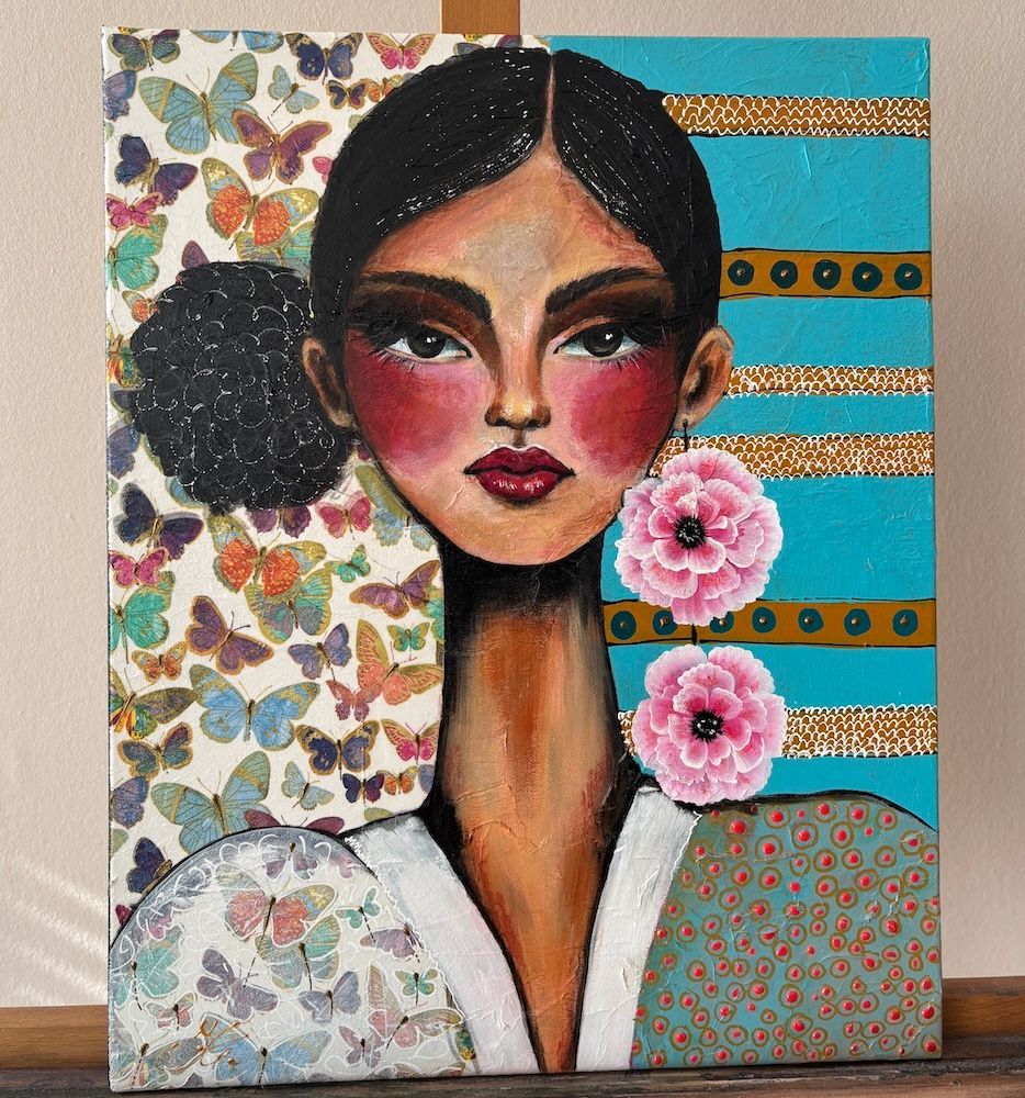 "Pink Earrings" Mixed media doek